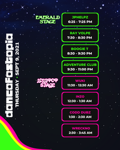 DANCEFESTOPIANS. SET TIMES JUST DROPPED! Start planning your #DFT2021 adventure and we will see you in the Emerald City! Dancefestopia.com for tickets!